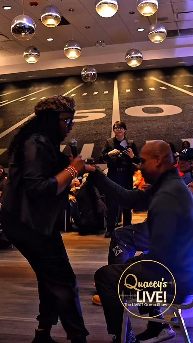 SIP. SING. DANCE. COMPETE! * ONE BRAND, ALL VIBES! SIP. SING. DANCE. COMPETE! * ONE BRAND, ALL VIBES! SIP. SING. DANCE. COMPETE! * ONE BRAND, ALL VIBES! Welcome to Quacey’s LIVE! WHAT We OFFER MOBILE BARTENDING BOOK NOW THE LIVEST GAME SHOW BOOK NOW Follow us: @Quaceys_LIVE