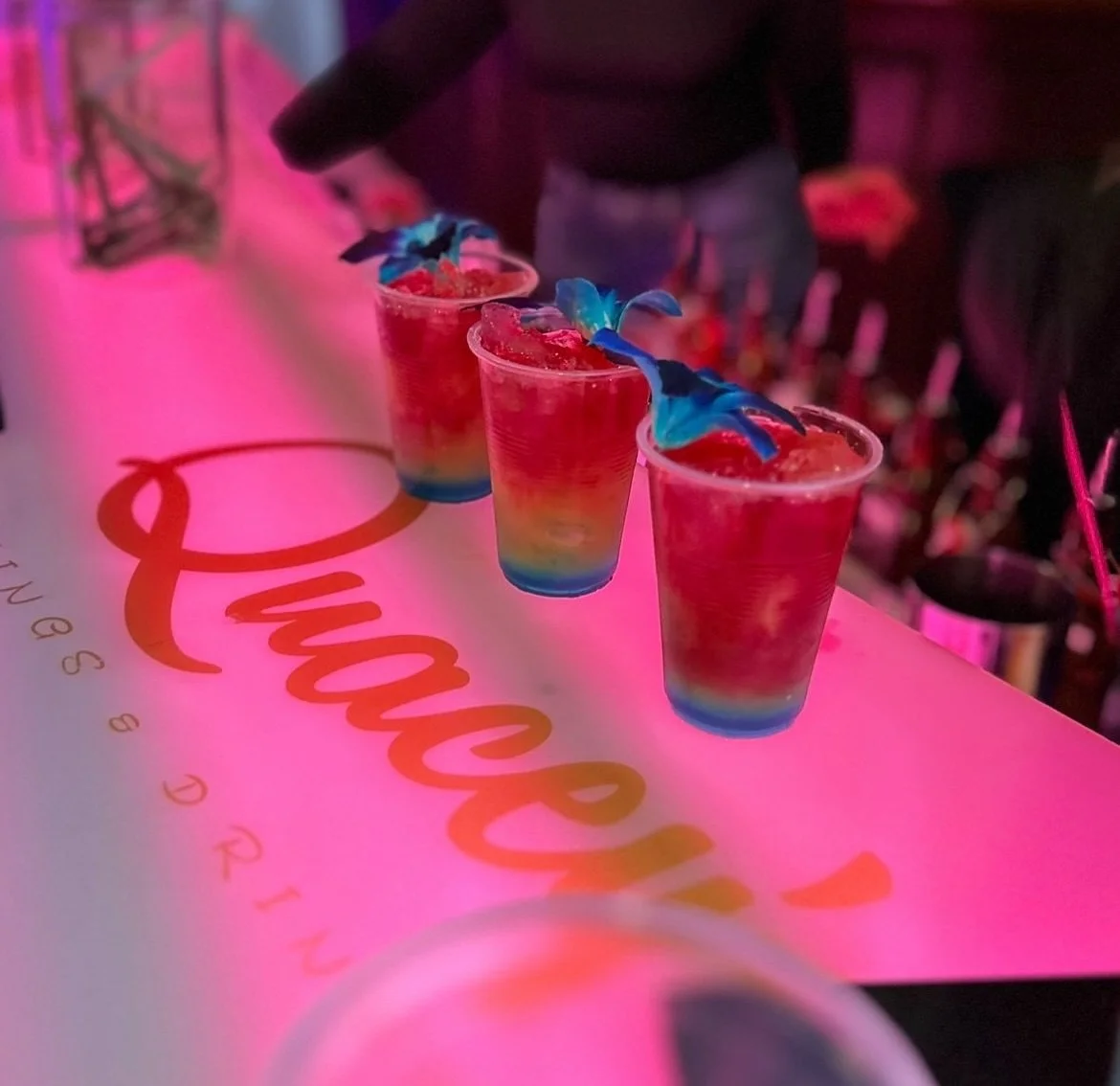 SIP. SING. DANCE. COMPETE! * ONE BRAND, ALL VIBES! SIP. SING. DANCE. COMPETE! * ONE BRAND, ALL VIBES! SIP. SING. DANCE. COMPETE! * ONE BRAND, ALL VIBES! Welcome to Quacey’s LIVE! WHAT We OFFER MOBILE BARTENDING BOOK NOW THE LIVEST GAME SHOW BOOK NOW Follow us: @Quaceys_LIVE